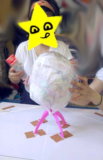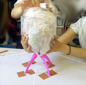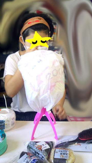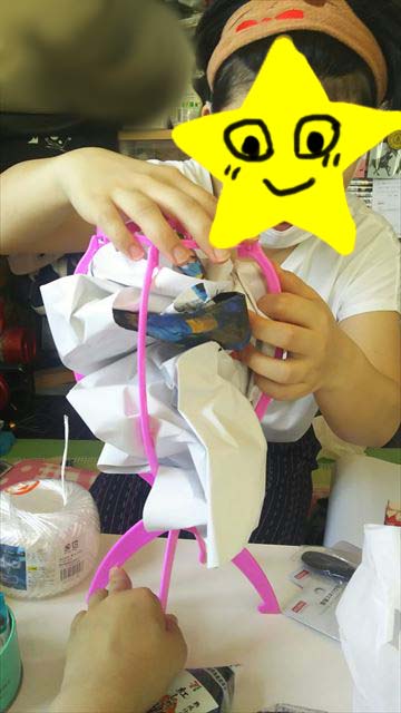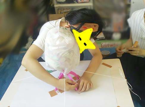 ⑥滑らないように更にラップをまきまき!巻き込まれるNちゃんの指