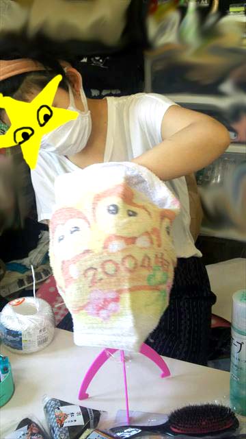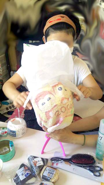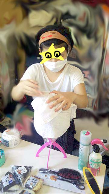 ③人間の頭の大きさになるまでタオルを巻いて固定