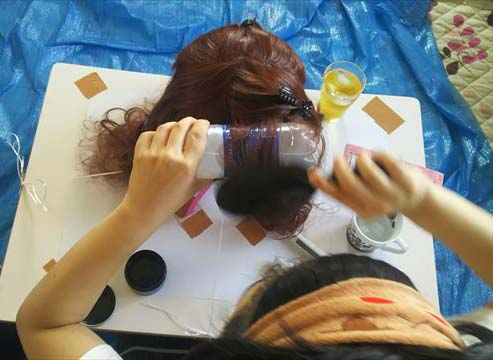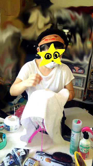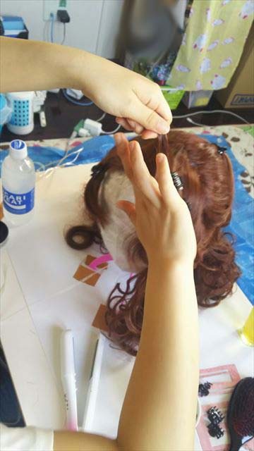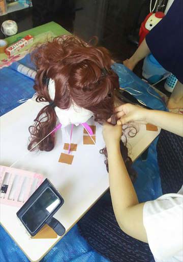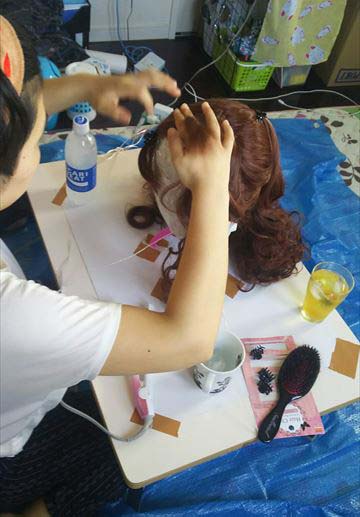 スタジオ(とある一人暮らしの乙女の家)にて、H氏が鮮やかにウィッグ作成に入る。
