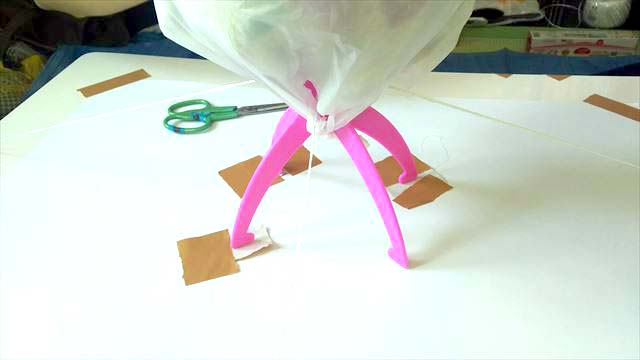 ④紐でスタンドをテーブルに固定