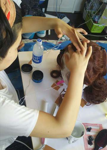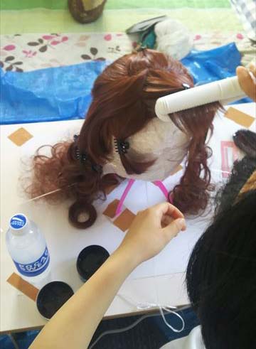 ⑧ウィッグをかぶせてブロッキング