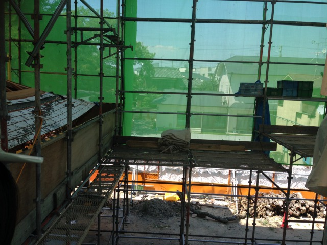 大屋根を葺き下ろしてきて、その一部を伸ばすときに使う板です。
