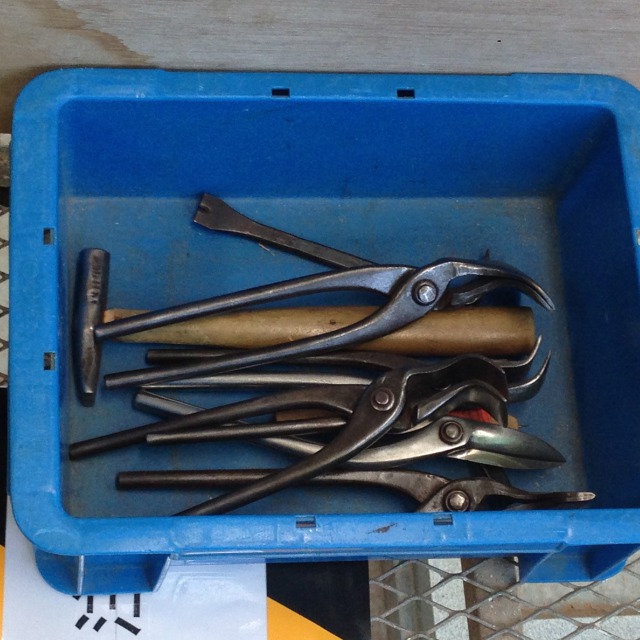 工具。胴を切ったり曲げたり、細かい作業です。