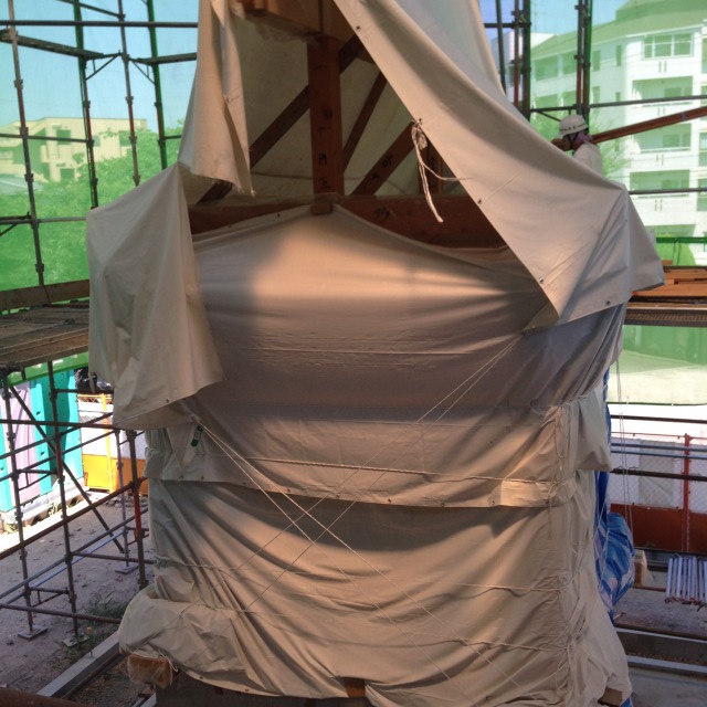今からこちらに登ります。組み上がった枠の状態でさえ、なんだか重厚な雰囲気!